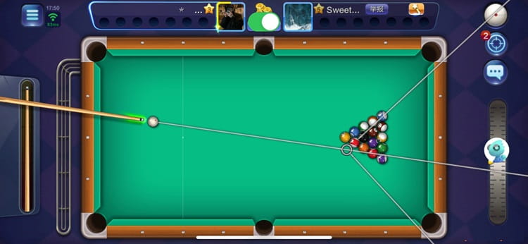 - 每次启用游戏后,右侧点击悬浮【蓝色小圆图标】,点击红色文字【加载开关按钮】,此时顶部会出现【滑块开关】,然后【开启】,选择游戏模式进行匹配玩家,进入桌球后滑动球杆即可看到延长线,如果没看到,顶部滑块开关,关闭后再打开即可看到;